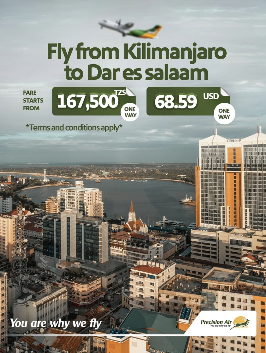 Precision Air is a public listed Tanzanian airline, which is a leader in providing scheduled flight services to over 10 destinations within and outside Tanzania from its main hub Dar es Salaam. The company operates on the principle that quick, comfortable and reliable service is the best way to serve its customers.