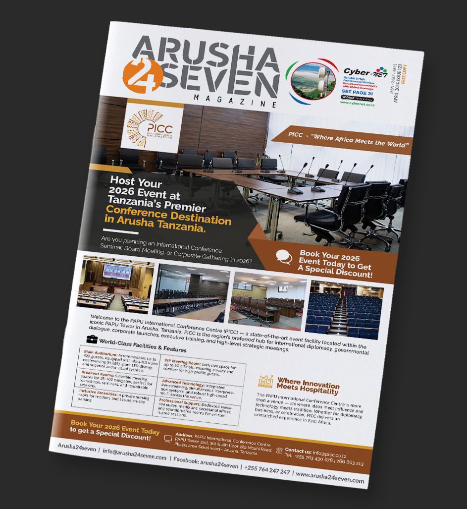 The ARUSHA 24 SEVEN Magazine was first published in February 2014, it has grown and has become the only magazine that is published monthly in the Arusha Region with over 5,000 followers.